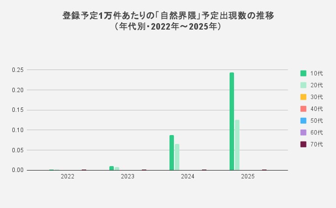 「Schedule of the Year 2025」の集計条件は「2025年の1日あたりの平均登録数が2024年の2倍以上ある予定タイトル」であり、この急激な伸びを若年層が牽引している事実は、「自然界隈」が単なる一時的なブームではなく、価値観の変化に根ざしたムーブメントであることを示唆している。