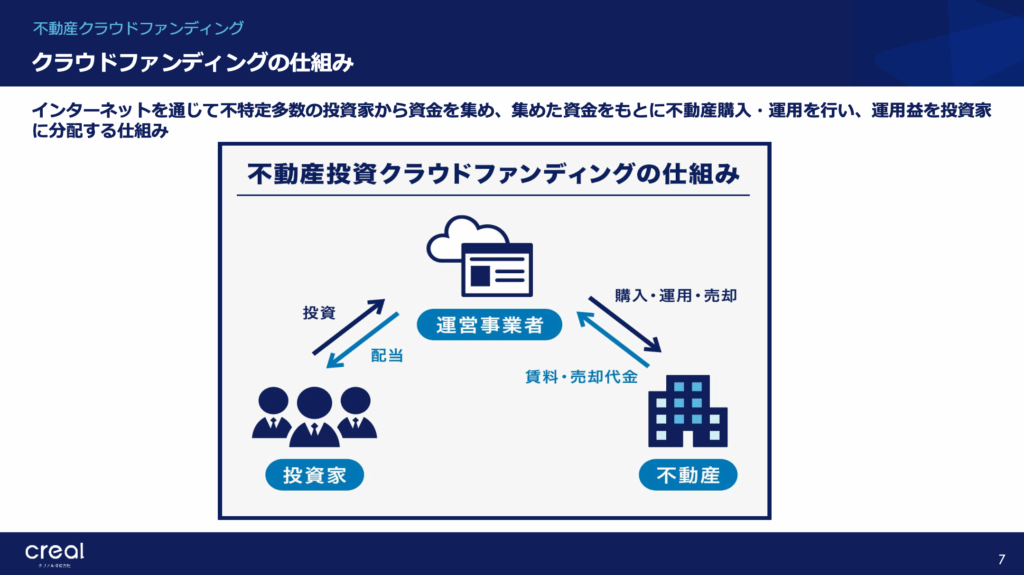 「従来の不動産ファンドの仕組みをオンライン上に再現したものが、不動産クラウドファンディングと言えます。