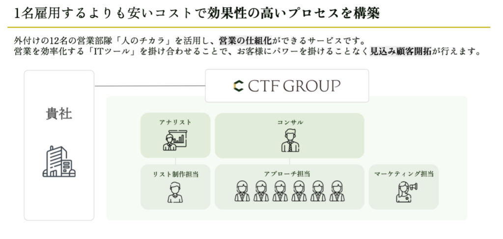 そのような流れのひとつを体現するのが、CTF GROUPの営業支援サービスである。だが同社が目指しているものは、単なる人手不足の一時しのぎではない。