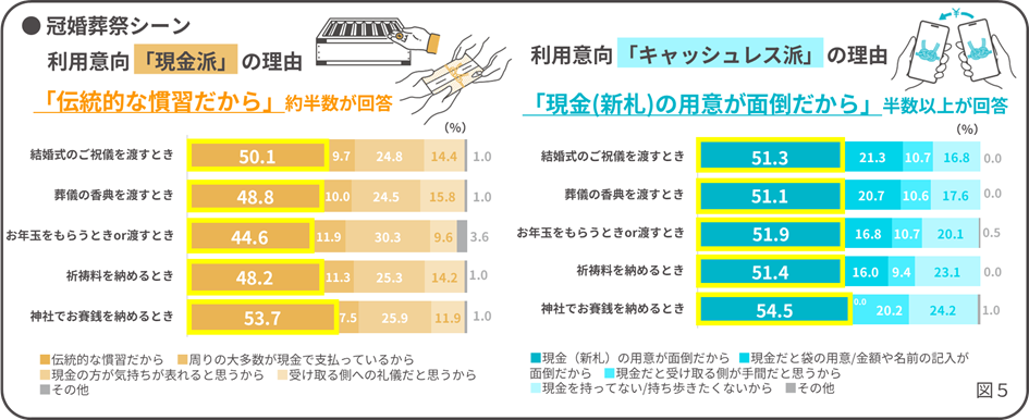 若年層がキャッシュレスを選ぶ最大の理由は、「現金(新札)の用意が面倒だから」であり、手間を嫌い、利便性を追求する彼らにとって、伝統的な儀礼であっても効率性が優先される傾向にある。