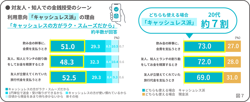 割り勘や会費の精算など、友人や知人との金銭授受のシーンも、現金の利用意向が高い領域だ。